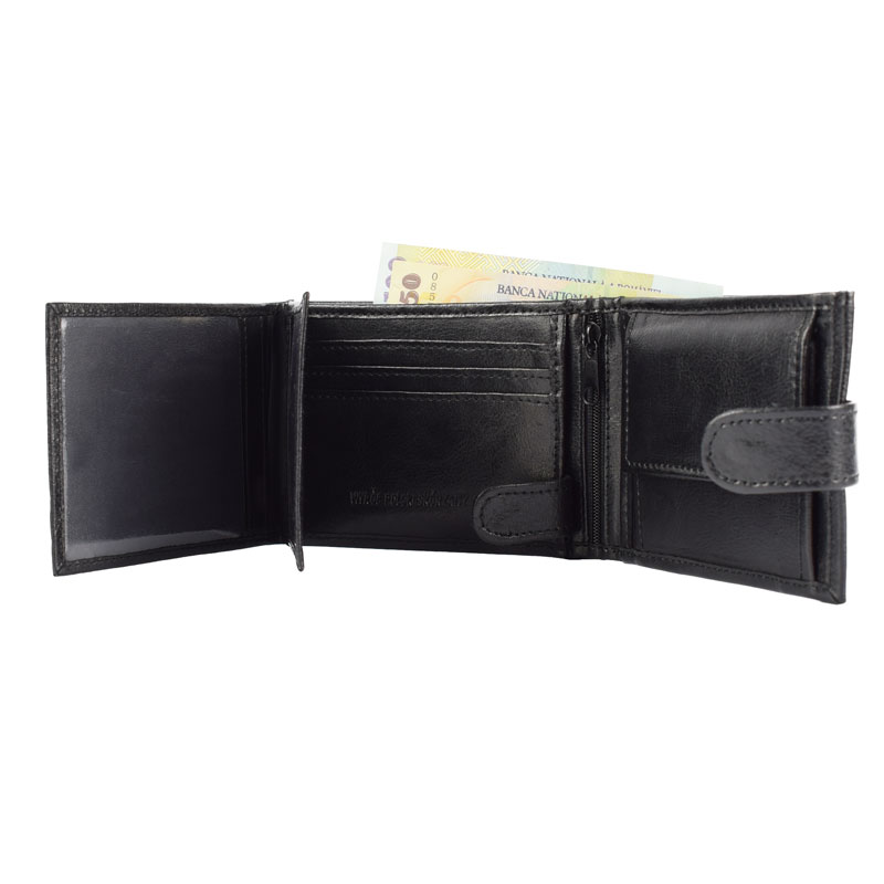 Portofel pentru barbati, din piele naturala, elegant, culoare neagra.