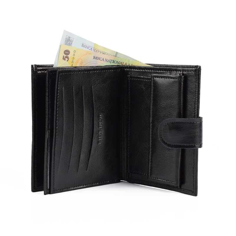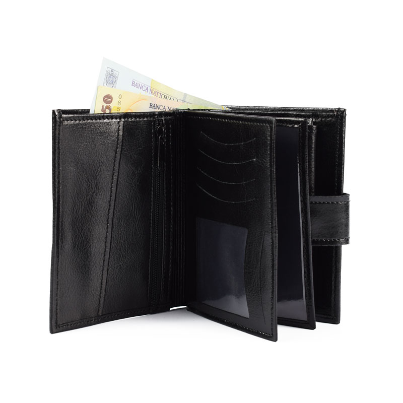 Portofel pentru barbati, din piele naturala, elegant, culoare neagra